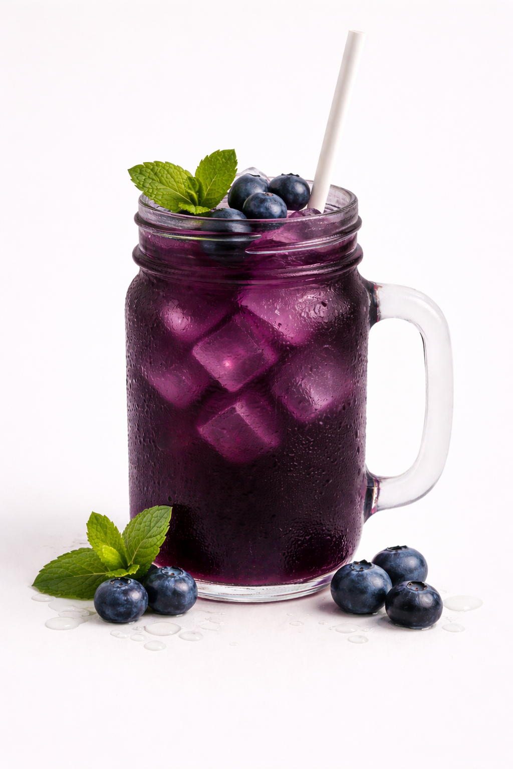 Představte si letní ráno v lese, kdy se vzduch mísí s vůní čerstvě natrhaných borůvek a na stole se leskne sklenice plná ledu a temně fialové limonády.