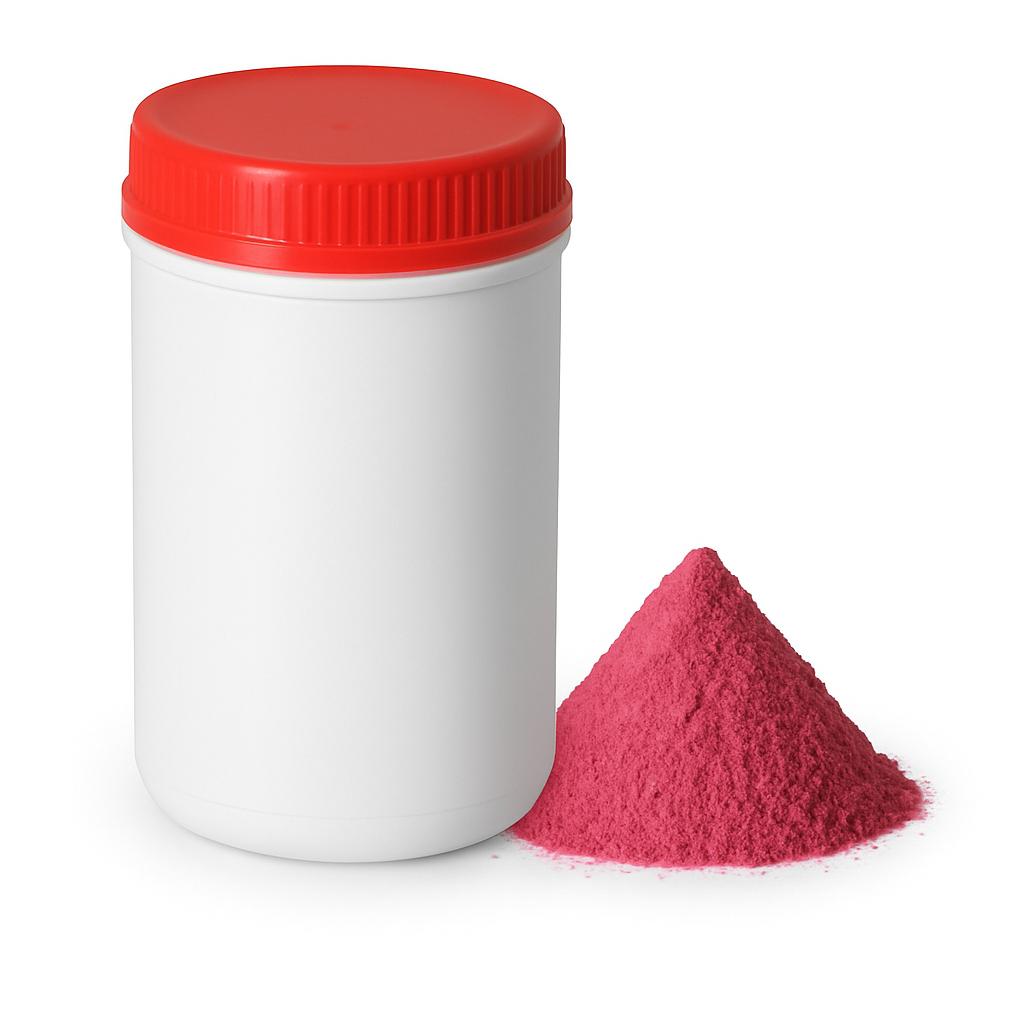Složení: Cukr, sušená malinová šťáva (6,7 %) [sušené maliny, maltodextrin], malinové aroma, kyselina citronová, rostlinný koncentrát z ibišku a mrkve, protispékavá látka (oxid křemičitý, fosforečnan vápenatý), vitamín C (kyselina askorbová)